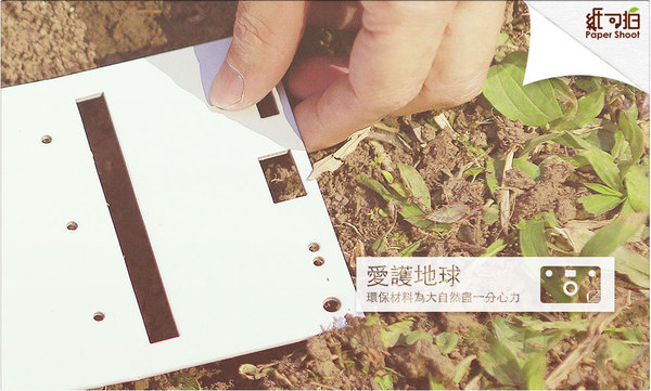 特別的是,這台紙相機訴求環保,特殊的種子紙外殼,將種子埋入紙中,當外殼汰換的時候,可以埋入濕潤土壤種植綠色植物。