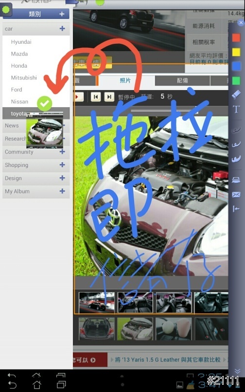 並運用文字加註以及畫圖功能,筆記各車車款的特色,