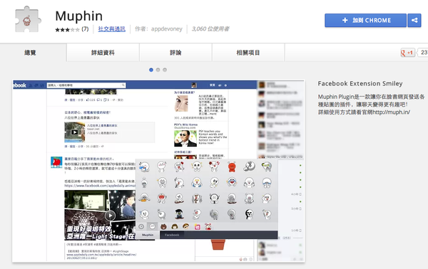 Muphin Plugin是一款讓你在臉書網頁發送各種貼圖的插件(包含FB官方和LINE貼圖),讓聊天變得更有趣吧!