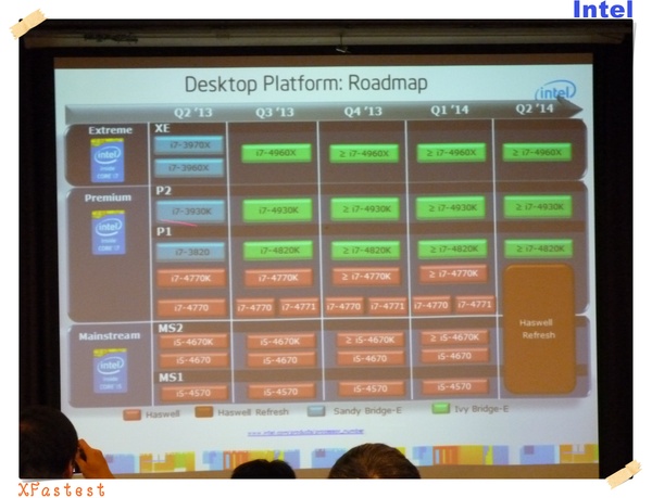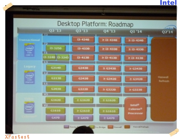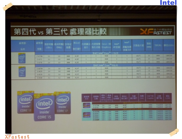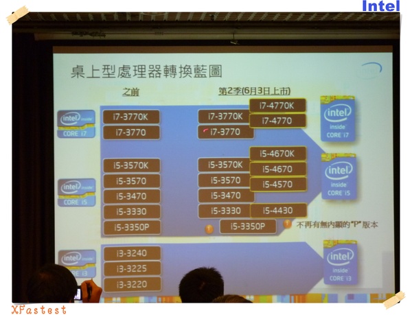 【▼】Intel桌上型處理器轉換藍圖 ,注意的是前幾代出現的無內顯 P 版本則是只做到 i5-3350P,也代表Intel要整合顯示這一塊大餅,讓我們示目以待。6月3日為上市日,筆者於6月23日赴光華商場一遊,詢問i7 4770K竟都缺貨,尚在補貨中,該不會XF的網友們參加為完6月22日的體驗會之後,隔天就去掃貨了,大家果真的都是行家。
