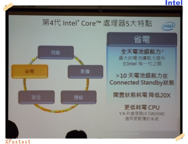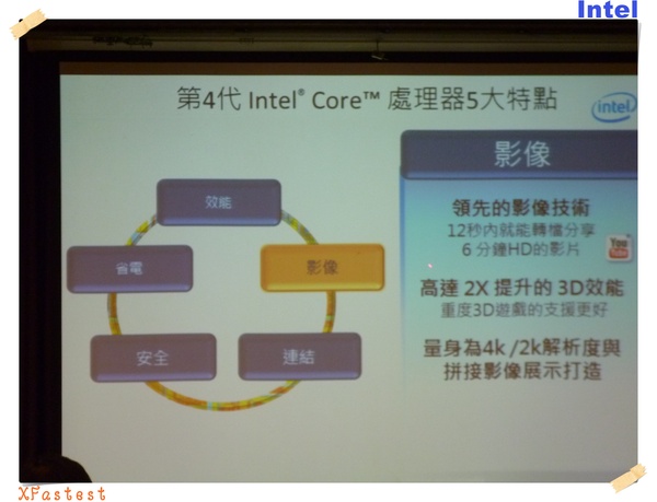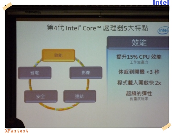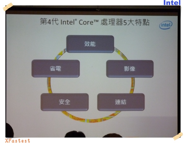 【▼】Intel第四代處理器環環相扣的五大特點:效能、省電、影像、安全及連結。