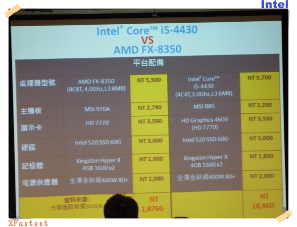 【▼】挑戰當然都要有一個基準點,不過因為設計架構不同,所以除了主機板和CPU不同外,其他配備是相同的,Intel組裝起來的價格還比AMD還要便宜三百元;這邊要特別提到的是AMD FX-8350是8核心且頻率為4GHz,而Intel i5-4430是8核心且頻率為3GHz。