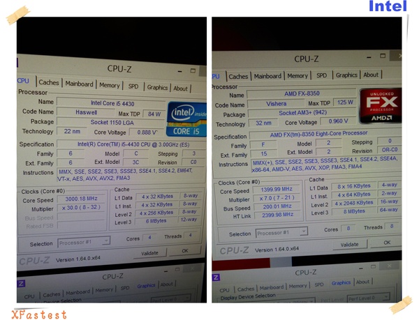 【▼】以CPU-Z測試軟體看兩測試平台CPU相關資訊。