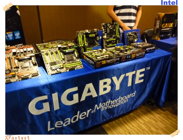 【▼】會場上技嘉展示了產品線的全新主機板系列(含AIO的小板)。