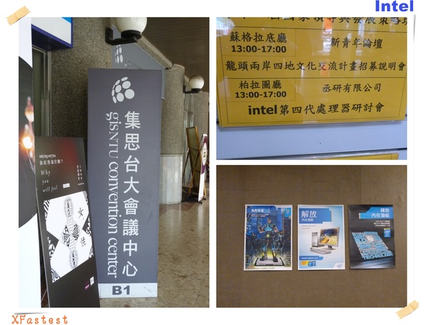 【▼】此次Intel第四代處理器研討會的地點就在台灣大學旁的集思台大會議中心B1,選擇這個地點當然就是要【集思廣義】各位XF網友的意見,作為以後開發新產品的意見調查。集思台大會議中心裡面好多廳,都是以古希臘人名來命名的,Intel第四代處理器研討會在柏拉圖廳;大家有沒有發現蘇格拉底廳的主題前兩個字對到Intel,竟是【龍頭Intel】,最上面搞不好還有CPU三字,【CPU龍頭Intel】,這就太神了吧!海報則是主打釋放內在潛能,也就是讓消費者盡情的玩超頻了。