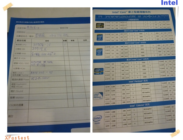 【▼】挑戰桌桌上左邊擺放了挑戰者的規格表,右邊則是擺放了Intel Core 處理器家族系列,讓挑戰者知道自己的等級大約在哪個程度。