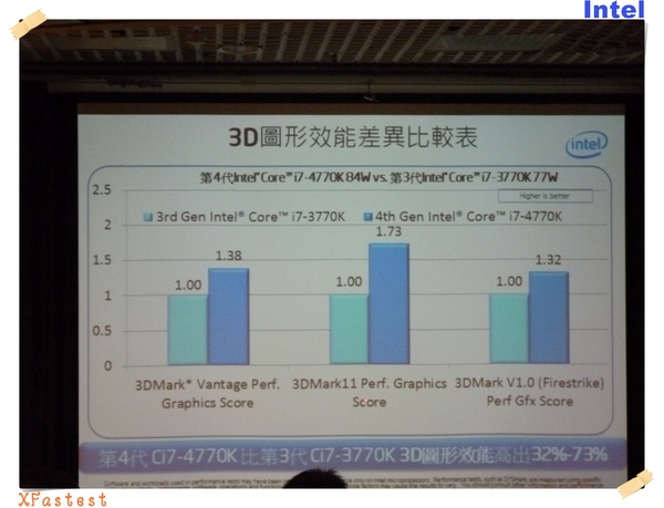 【▼】Intel 4770K VS Intel 3770K@3D圖形效能差異比較:Intel 4770K圖形效能較Intel 3770K效能高出32%~73%。