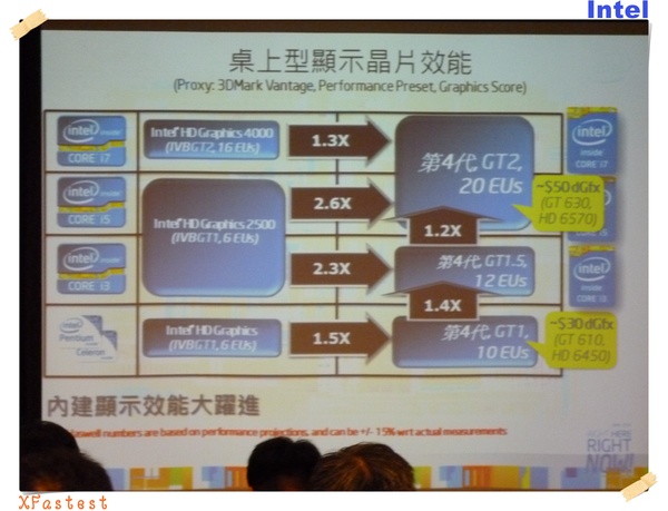 【▼】桌上型顯示晶片效能:第四代GT2內顯效能直逼Nvidia GT630及AMD HD6570)。