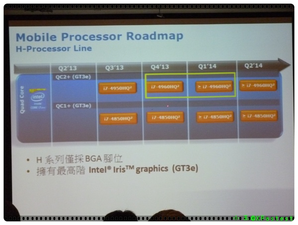 ▼Mobile H系列上市的時程規劃,擁有INTEL最高階的Iris Graphic