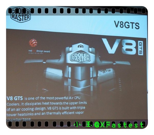 ▼下一家是讓你夏天很涼爽的Coolermaster,自81年成立至今,不僅在專業代工提供符合客戶需求的散熱產品,同時也藉由創新設計、專業技術與建立自有品牌行銷全球,成為世界專業散熱領導廠商。此次主打很像柯博文頭的V8 GTS散熱器
