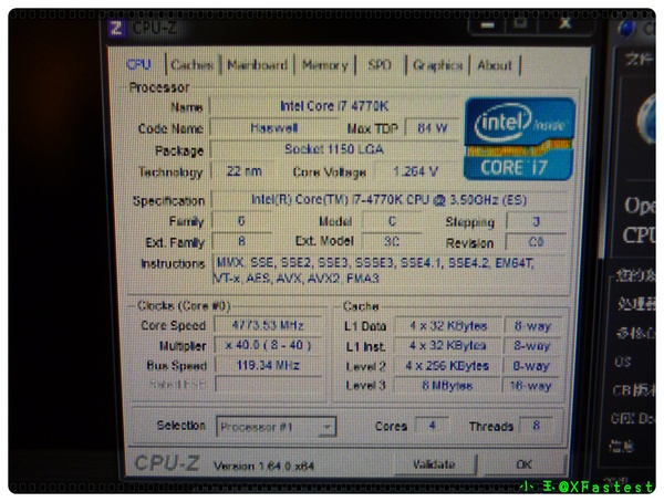 ▼INTEL第4代處理器i7-4770K使用CPU-Z的數據