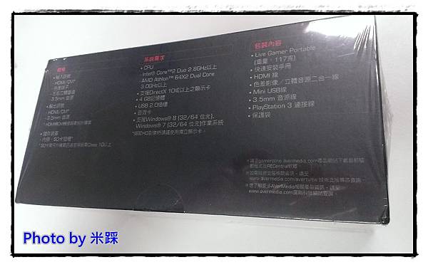 ▼彩盒側邊詳述了規格、系統需求與包裝內容,電腦系統建議要雙核心以上,4GB的記憶體,但是米踩測試的電腦僅使用2GB的記憶體,也是跑得動喔,另外要最最最注意的是,C875所搭配的軟體,一定要使用Windows 7與Windows 8的作業系統,不然會不能安裝喔。