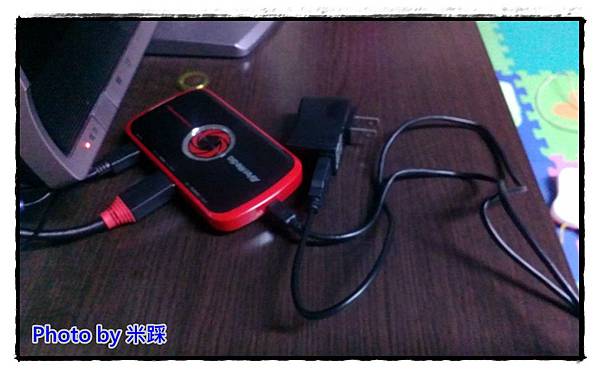 ▼這次測試米踩是使用C875易錄盒的PC-Free模式,這次離電腦很遠,於是找了個5v 500ma的USB充電插頭來用,依舊是可行喔。