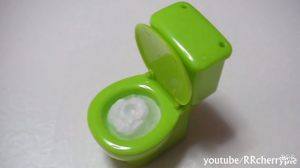 接下來,就會有泡沫狀的糖果從馬桶底部「浮出」。看起來多像是馬桶阻塞啊!