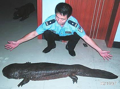 俗名「娃娃魚」,身長60~70公分,為中國國寶動物;名列「IUCN紅色名錄」極危物種,意指野生族群的滅絕機率極高。