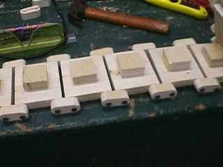 每個履帶片大概要花十分鐘, 就算我用批次大量做的方法 - 比方說一次做好要用到鑽床的部份 - 來加速製做速度. 我需要70片履帶片, 可能還要多一些. 最糟的是我甚至不確定木製履帶強度夠不夠, 有可能我得用更強的材料這樣再來一遍.