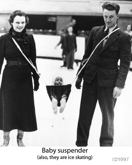 爸媽在溜冰,小孩誰要顧?看來只好把他吊在半空中了~