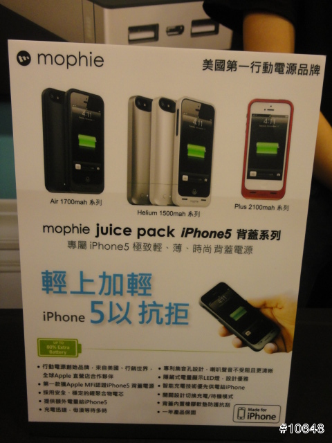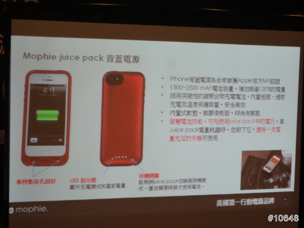 ▼ 這是現場免費體驗充電補給站Mophie Juice Pack iPhone 5 背蓋系列的近拍照
