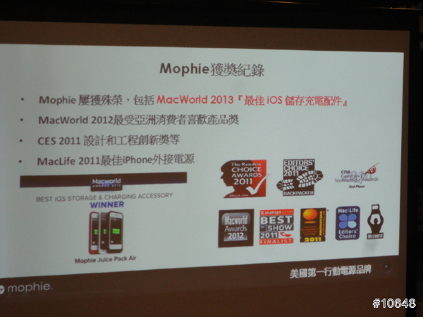 ▼ Mophie 屢獲殊榮,包括 MacWorld 2013『最佳 最佳 iOS 儲存充電配件』、MacWorld 2012最受亞洲消費者喜歡產品獎及CES 2011 設計和工程創新獎