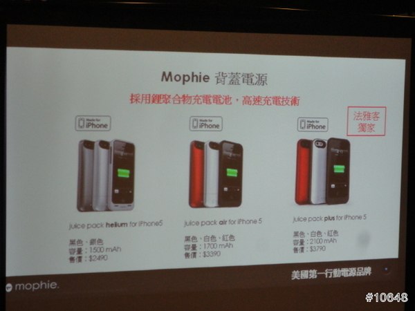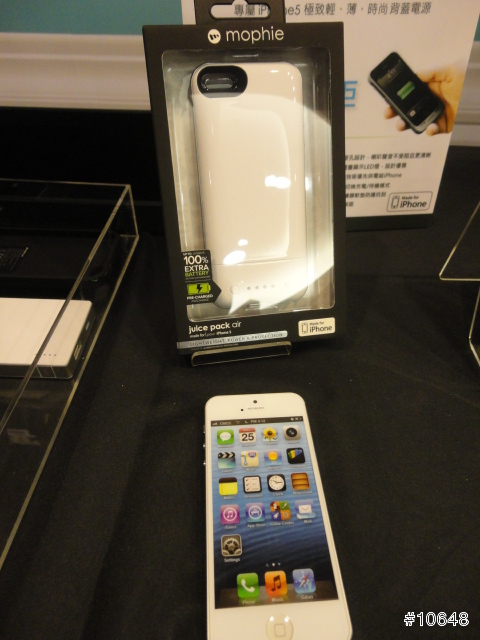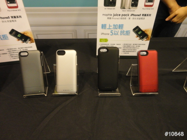 ▼ 首先看到的是Mophie Juice Pack iPhone 5 背蓋系列, 現場展示紅, 黑, 白, 銀四色