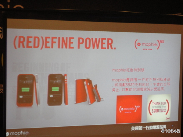▼ Mophie 也參與公益活動(RED)EFINE POWER, Mophie每銷售一件紅色特別版產品, 將捐獻5%的毛利給紅十字會的全球基金, 以幫助非洲國家減少愛滋病