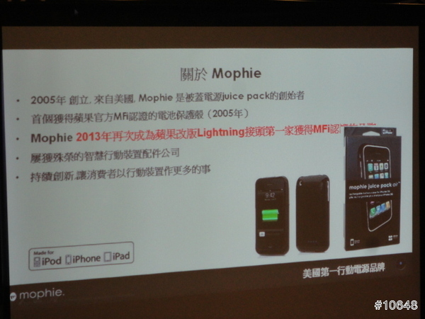 Mophie, 是「Juice Pack」行動電源的創始者, 在全球超過300家蘋果專賣店中都能發現它所生產的超薄手機背蓋電源及行動電源,2013年Mophie 再次成為蘋果改版Lightning接頭第一家獲得MFi認證的品牌,並榮獲2013MacWorld雜誌推薦『最佳iOS儲存充電配件』。與T客邦合作安排網友體驗會, 這麼好的機會可以第一時間接觸及瞭解最新產品, 小弟一定立馬參加!!!