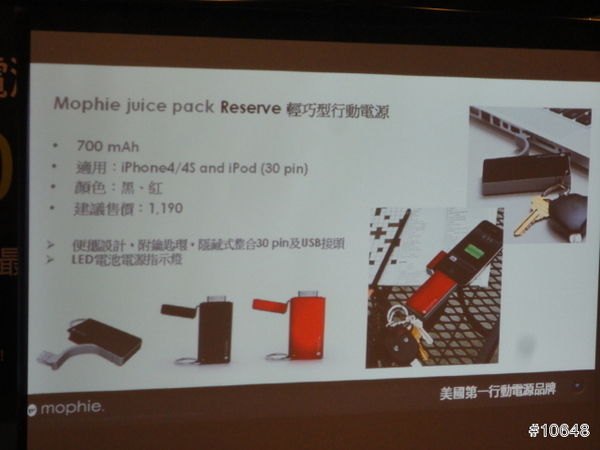 ▼ 這是現場免費體驗充電補給站隨身型的 Mophie Juice Pack Reserve Mirco 1000mAh系列的近拍照
