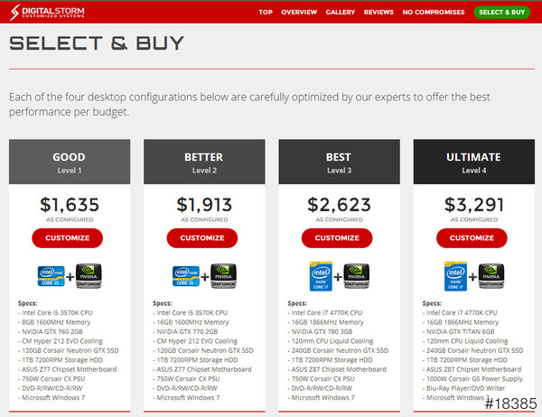 另外一個站http://www.digitalstormonline.com就比較便宜,但配備就小弱一點,選基本款的售價1635鎂,折算台幣約49050,不過SSD只有120G再搭1TB的硬碟
