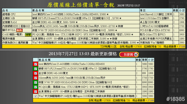 之前就說反正他這次要回國,那就回台灣再買吧,除了保固比較不方便之外,其他就還好,反正他也懂電腦,有啥問題拆下來寄回來給我代送也行,反正在國外休閒活動多,真的不幸電腦壞了,多等幾天的維修也沒差,寄回台灣修再寄回去大約2~3週吧,其實和在國外寄修也差不了多少,當然是線上選了差不多的東西給他(之前配的單不知跑那去了,我又重新選一次給大家看,上週買時RAM有便宜一些些)