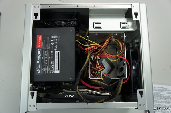 上電源全部都上了,ITX有時就是這樣,東西都塞在一起,有啥忘記的或沒裝好的,都要把部分零件拆下來才能裝,還有忘了美光的SSD沒有附3.5吋轉接架,只好再跑一趟光華買一下囉 >”<