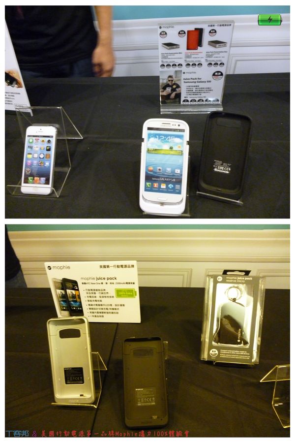 【▼】Mophie Juice Pack背蓋系列,目前支援的手機除了iPhone5之外,連三星Galaxy SIII和宏達電的new HTC one亦有支媛。