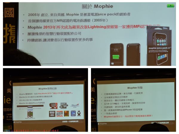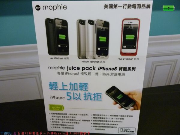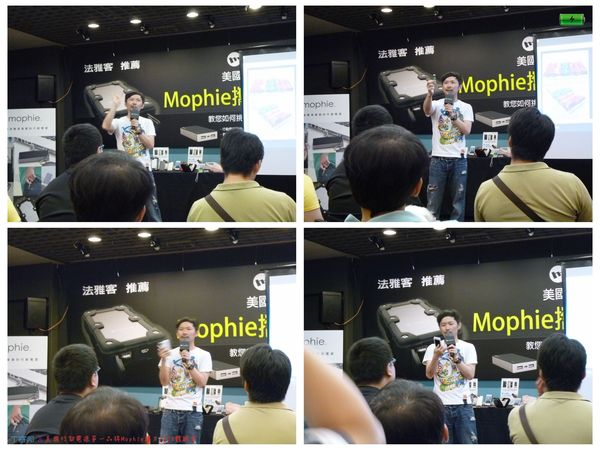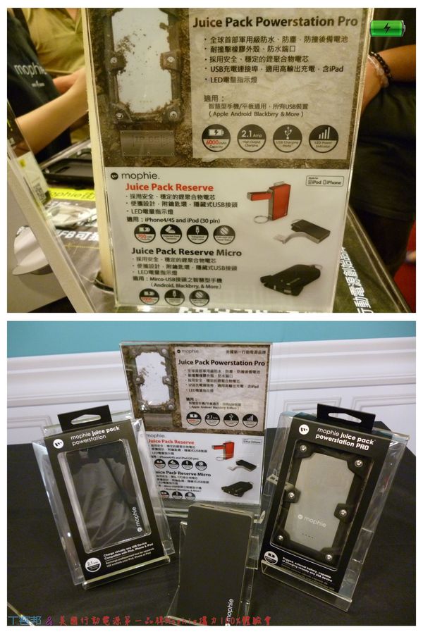 由於在台灣並沒有針對行動電源有強制性的法規,只要廠商自我宣示的認證即可,這樣造成大量黑【芯】行動電源流入市場,削價競爭的結果,受害最大的還是消費者本身。美國行動電源第一品牌-Mophie不但有歐盟CE、美國FCC認證外,更符合歐洲ROHS的標準及擁有蘋果公司MFi的認證,讓使用者在高速充電的同時,更增添裝置的安全性。除了適用於蘋果公司行動裝置上的充電外,近期Mophie更積極研發各大廠的智慧型手機及平板(HTC、Samsung ),加上配有IP65等級的防護殼一體成型,更讓人愛不釋手阿!非常感謝永準貿易(Mophie台灣代理商)及T客邦精心策劃的體驗會,並藉由3C達人Tim哥幽默詼諧又不失專業的說明,讓大家會後更明白如何挑選合適的行動電源,真的是讓小弟我收穫良多的一場體驗會。