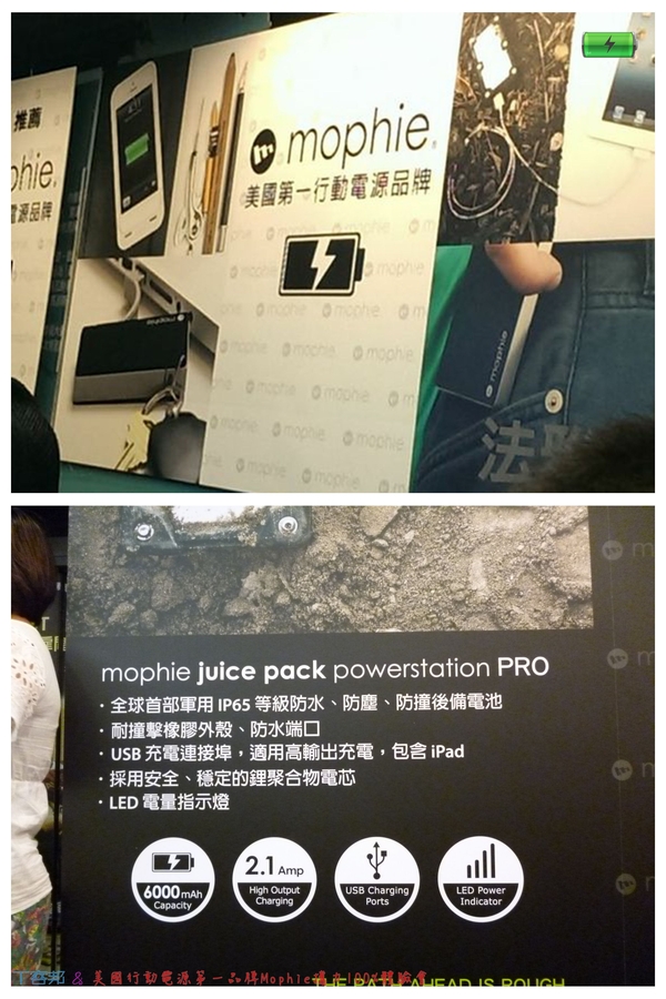 【▼】雖法雅客會場不大,但Mophie還是把整面牆佈置的很有感覺,這次主打的主角是有軍規標準的Powerstation Pro行動電源,其他配角也不差,使用者可依需求來選擇。