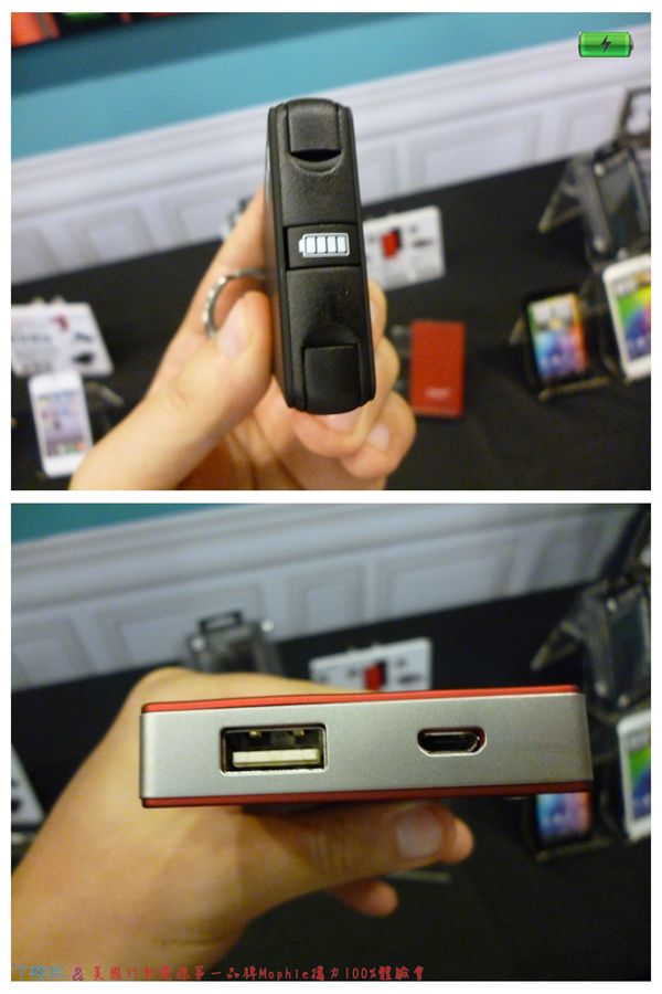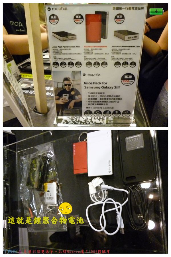今日體驗會Mophie的行動電源全都是採用鋰聚合物電池做當核心電池,具有小型、輕量、高蓄能,且超薄化特徵,可以配合產品的需要,製作特殊形狀與容量的電池,最薄甚至可以達到0.5mm的厚度。