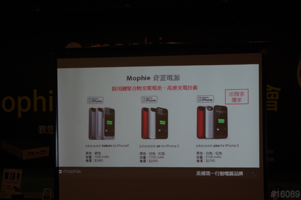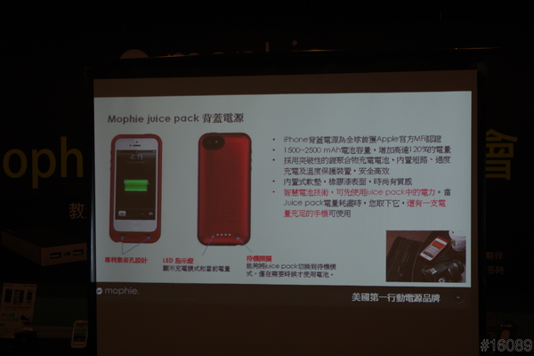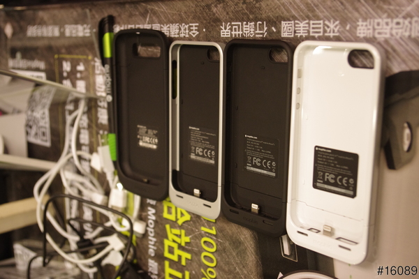 ▼Mophie iPhone5背蓋電源,一整個琳瑯滿目,可惜不是蘋果機的我無法測試,殘念(Tim哥說充電最好不要講電話,如果套上充電的話還可不可以聊天阿?)
