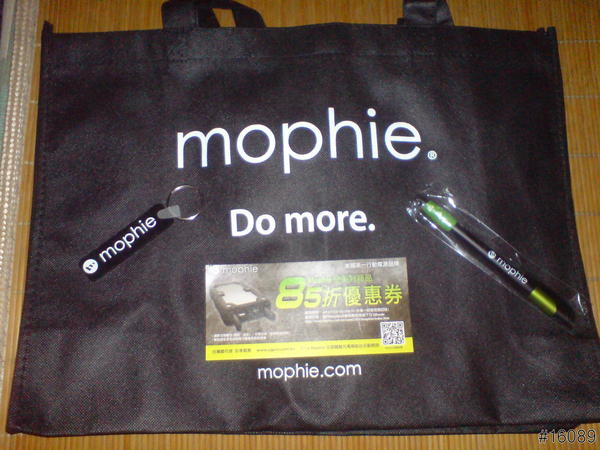 ▼T客邦很貼心的準備精美小禮物(Mophie環保袋、Mophie鑰匙圈、Mophie筆)