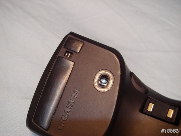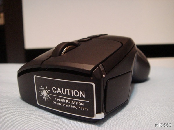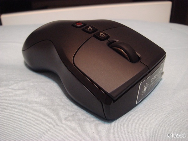 在鼠身的正前方則有一張寫著「請勿直視光束」的警示貼紙,撕開之後就可以看到在底下的紅光雷射發射器,可當作雷射筆使用。