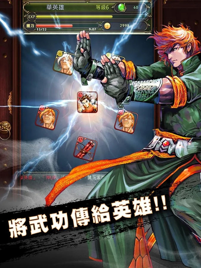 各英雄人物的武將可以互相傳授,藉此提升英雄戰鬥力,與你一起挑戰更強勁的敵手。