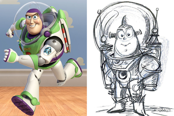 一些初稿和最終定稿的差別大到已經完全改變了人物的個性了,如果當初在製作《玩具總動員》的時候,皮克斯工作室的頭兒們一不小心喝多了,手一滑在初稿上寫上“批准”兩字的話,那麼威武的巴斯光年將會變成一個賣萌的小正太。