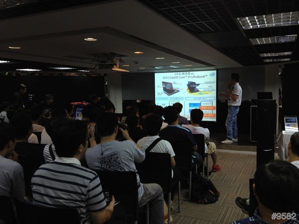 由於體驗會的時間只有二個小時,加上介紹的產品非常的多,所以時間安排上也挺緊湊的,開場便是由可愛漂亮的主持人作Queenie開場白,而在簡短的開場白之後,便是由所安排的第一場演講INTEL 工程師Jim來幫大家來介紹INTEL第四代的Core 處理器(代號Haswell),讓大家了解它所提供的卓越處理能力,而這次新一代的Core處理器,主打是在能比上一代的處理器提供更高效能的圖形處理能力與遊戲效能,更重要的也是此次體驗會的主題,便是可以提供4K2K(UltraHD)的影片播放能力,這也是吸引人大家來此參加體驗會的重點~ 透過工程師的專業講解,讓大家了解到新一代處理器不僅是效能更高,而且更省電! 使用一年下來可以幫使用者省下一筆為數不小的電費呢~