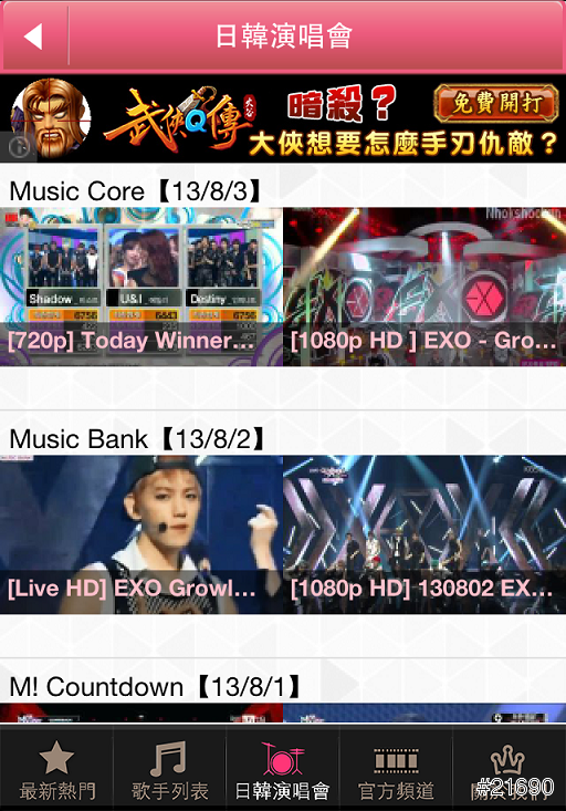 居然還給我提供各大男女團體明星或是經紀公司官方網站上的影片!!