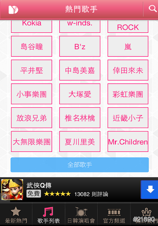 可以在下面點全部歌手用注音或字母搜尋