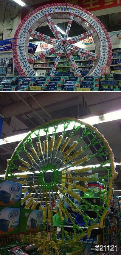 雖然是為了招徠顧客 但這些用大賣場裡隨手可得的日常用品所搭建的「廣告」 也太「搞剛」了吧 簡直可以稱做藝術品 俗話說大隱隱於市,指的大概就是這個吧! 資料來源 Same Shit Different Day... 讚 收藏 快速回應 引言回應
