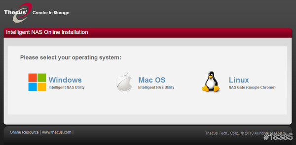 裝好後就是使用Thecus N2520啦,從光碟片安裝相關程式或是從色卡司官網下載程式(http://install.thecus.com),可以看到支援的OS相當完整,有Windows、MAC OS與Linux