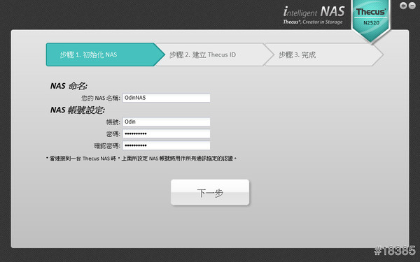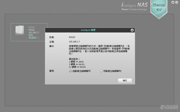 抓到安裝好的Thecus N2520,點選進入設定就會看到快速建立的對話框