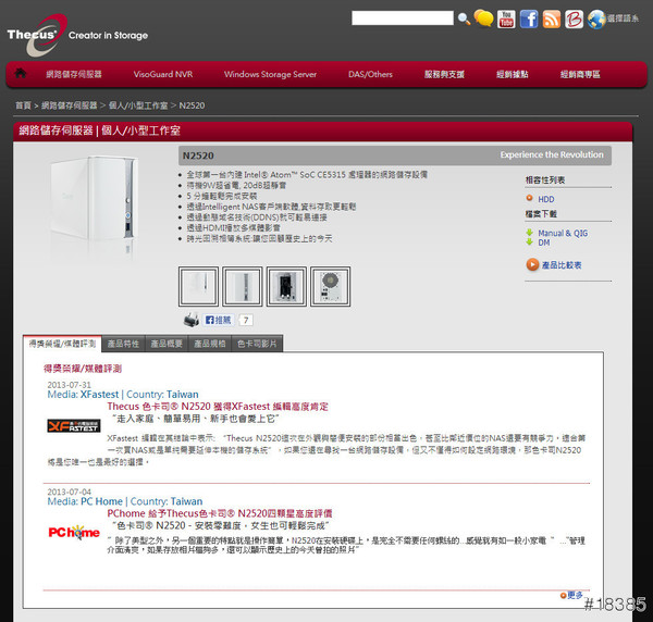 Thecus N2520官網介紹:http://tc.thecus.com/product.php?PROD_ID=87