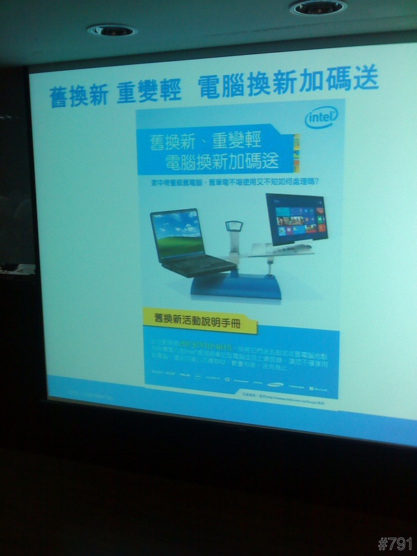 最後Jim提到了Intel現在有個促銷方案,就是可以把舊筆電或是舊桌電透過"舊換新"的方案,最多可以拿到價值3800元的禮券