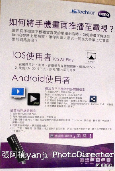 因此,長期經營家電視界的台灣之光BenQ,特地開發且推出電視上網精靈JD-130,這小小一支,就像是越級打怪的好武器呀!只要你擁有她,立馬可以把iPad上的「後宮真難賺、步步驚訝」,或是任何要靠「PxS、迅x看看、風x網」的影片,從個人電腦移到客廳的TV上,躺在沙發裡看啦!