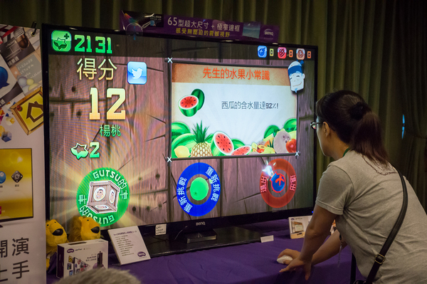 ▼以下是活動當天現場一個妹妹使用 BenQ 智慧電視棒試玩切水果遊戲的情形,中途發現有突然卡頓的情形,我想可能是太多網友試用不同 APP 造成記憶體不足的關係,要是 BenQ 智慧電視棒有 2GB 的記憶體就好了!