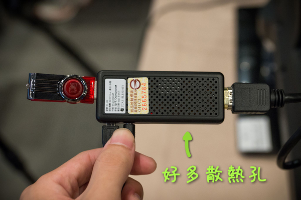 ▲讓我們先從 BenQ 智慧電視棒 JD-130 的正面看起吧,右側內建目前液晶顯示器最廣泛使用的 HDMI 插頭,盒裝內也附贈延長線材讓安裝更輕鬆,和 BenQ 主打的口號「隨插隨開演」非常呼應,而左側則提供了 USB 插槽,可以插上隨身碟並撥放裡頭的照片、影片、音樂,對長輩、小朋友使用上可說是非常簡易。因為 BenQ 智慧電視棒 JD-130 體積小巧又內建性能不俗的雙核心處理器,所以正面還佈滿了密密麻麻的散熱孔避免主機因過熱而當機毀損。